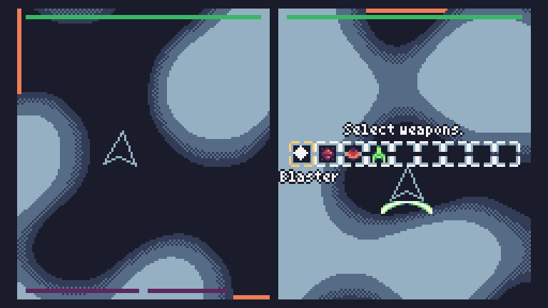 a local multiplayer cave flier game in the spirit of old Finnish games like Rocket Chase, KOPS, and Tappo II.